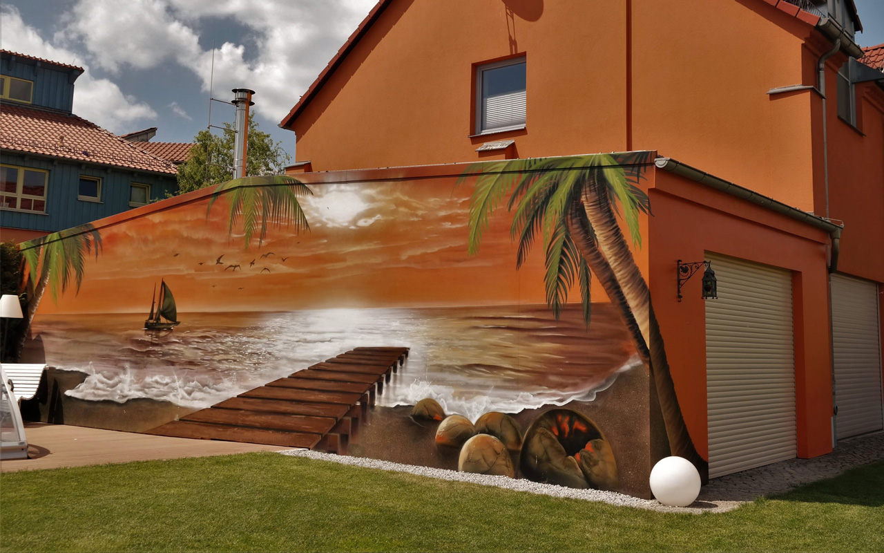 Durch hochwertige Farben und Materialien können wir alle Oberflächen mit hoher Präzision und Farbtreue gestalten. Unsere Arbeiten sind langlebig und nachhaltig und werden auf Wunsch durch UV-Lack witterungsbeständig versiegelt. Dabei liefern wir vom Entwurf bis zur Fertigstellung alles aus einer Hand und koordinieren gern sämtliche Gewerke.